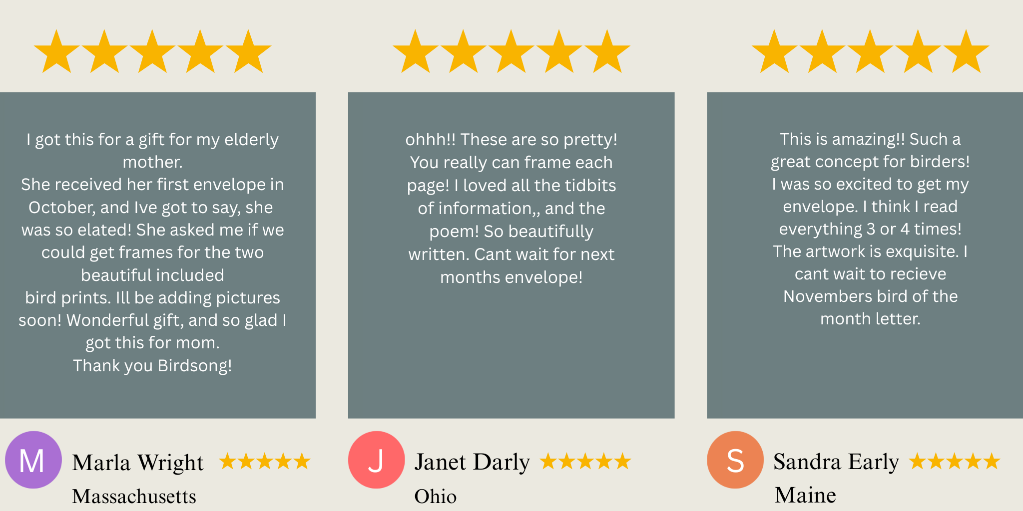 "Each letter is not merely information, but an experience — a moment of beauty, curiosity, and connection to our feathered friends~ delivered to your mailbox."