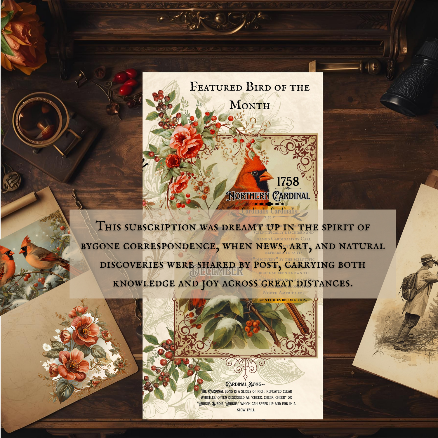 "A monthly posting of feathered wonders — where vintage elegance meets the timeless joy of handwritten correspondence."